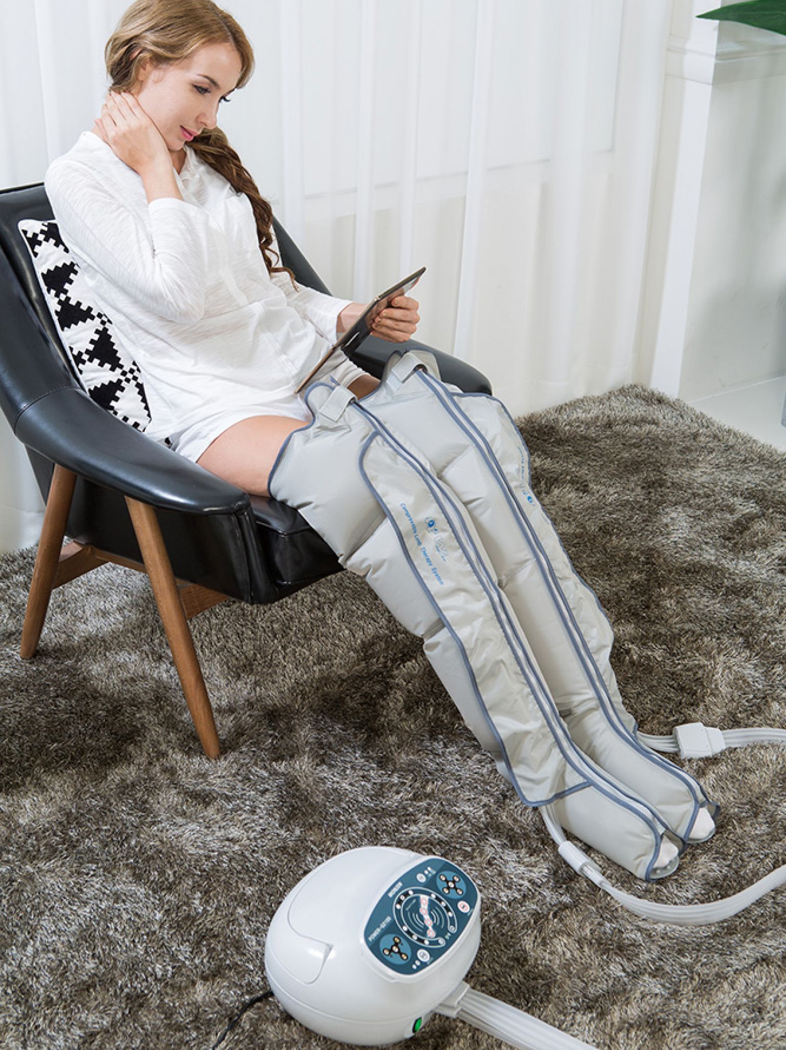 Mit dem Q2200 Lymphdrainage-Heimgerät holen Sie sich das angenehme Gefühl einer professionellen Lymphdrainage Behandlung nach Hause! Die Beinmanschetten sind besonders anpassungsfähig und enthalten je 4 flexible Luftkammern für eine schonende Behandlung der Beine. Dieses Produkt ist anders als andere Hersteller speziell für große Größen ausgelegt.