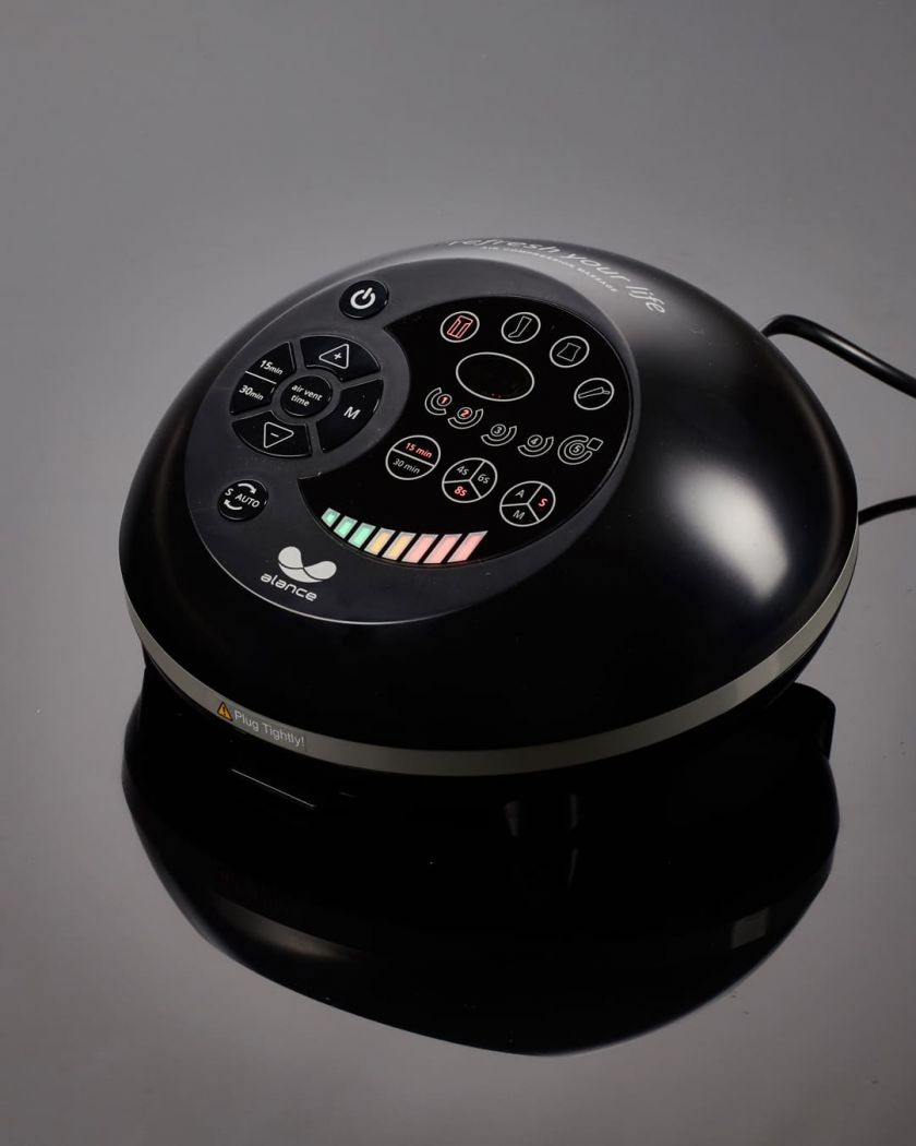 Der Kompressor, der für die Druckluft verantwortlich ist, ist besonders leicht und leise, um Ihre entspannende Massage nicht zu stören.